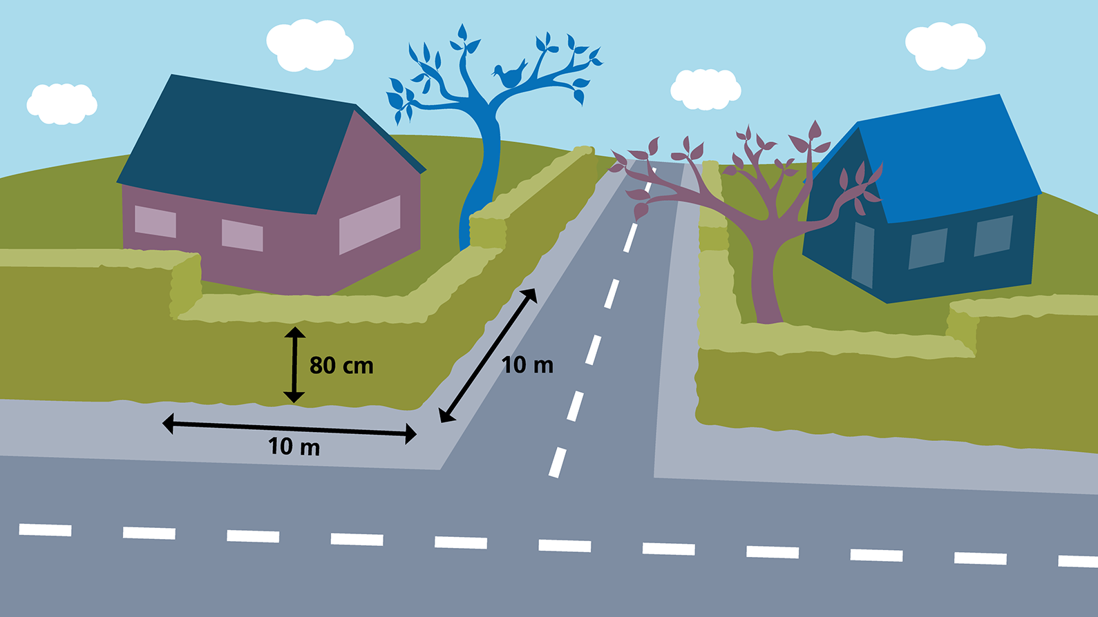 I foldern Råd för trafiksäkerhet kan du läsa mer om vad lagen säger om olika bredder och höjder på din växtlighet. I slutändan handlar det egentligen bara om att klippa sina träd och buskar med jämna mellan för att öka trafiksäkerheten och minska olycksrisken för dig, dina grannar och andra som rör sig kring din fastighet.